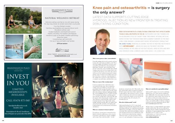 KNEE OSTEOARTHRITIS IS A DEBILITATING CONDITION THAT AFFECTS MORE THAN 8.5 MILLION PEOPLE IN THE UK . SUFFERERS CAN FIND THEMSELVES IN AN ONGOING CYCLE OF ‘ SHORT-TERM ’ TREATMENT OPTIONS , WITH AN EXPECTATION THAT INVASIVE KNEE REPLACEMENT SURGERY IS THE ONLY LONG-TERM ANSWER . LEADING KENT-BASED ORTHOPAEDIC CONSULTANT MR JAMES YOUNG , HOWEVER , IS LEADING THE WAY IN TREATING HIS PATIENTS WITH ARTHROSAMID ® – WHICH HE HAILS AS THE MOST EXCITING DEVELOPMENT IN THE AREA IN THE PAST DECADE . HERE HE EXPLAINS WHY AND ANSWERS SOME COMMON QUESTIONS ABOUT THE CONDITION .