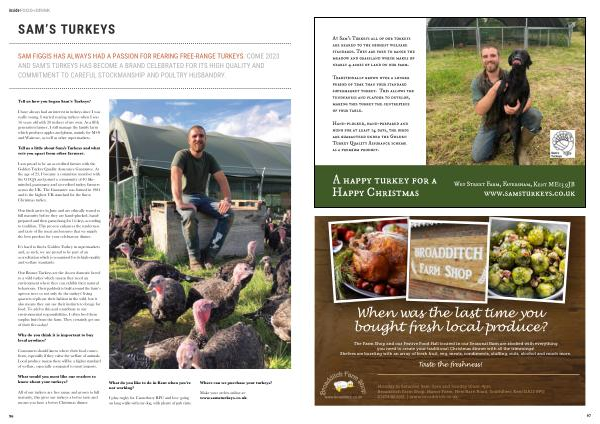 SAM FIGGIS HAS ALWAYS HAD A PASSION FOR REARING FREE-RANGE TURKEYS . COME 2023 AND SAM ’ S TURKEYS HAS BECOME A BRAND CELEBRATED FOR ITS HIGH QUALITY AND COMMITMENT TO CAREFUL STOCKMANSHIP AND POULTRY HUSBANDRY .
