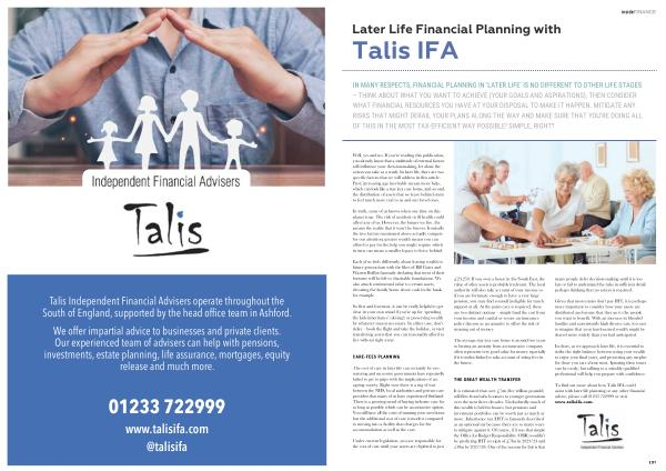 Talis Independent Financial Advisers operate throughout the South of England , supported by the head office team in Ashford .