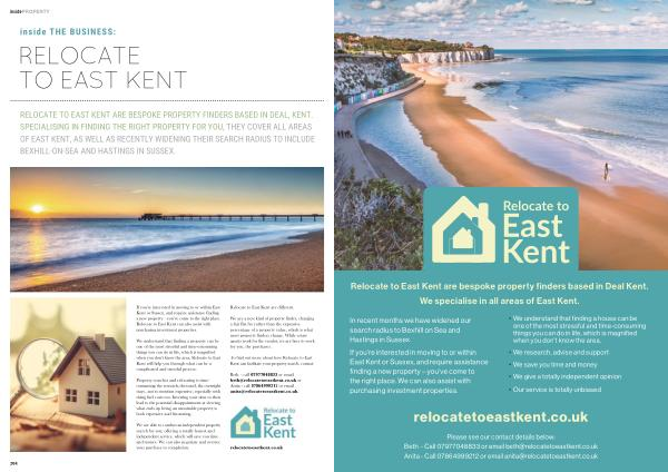 RELOCATE TO EAST KENT ARE BESPOKE PROPERTY FINDERS BASED IN DEAL , KENT . SPECIALISING IN FINDING THE RIGHT PROPERTY FOR YOU , THEY COVER ALL AREAS OF EAST KENT , AS WELL AS RECENTLY WIDENING THEIR SEARCH RADIUS TO INCLUDE BEXHILL-ON-SEA AND HASTINGS IN SUSSEX .