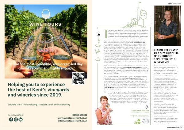 If you live near Canterbury you may have noticed vineyards in Barham . These belong to Ruth and Charles Simpson ( www . simpsonswine . com ), who came back to the UK after successfully running a vineyard in the Languedoc . They chose the chalky slopes of Barham because the soil is perfect for growing the grapes that make fine sparkling wines and the microclimate is also favourable . 20 years since their first planting , their wines win awards on a regular basis , and their reputation goes beyond the UK . Their sparkling wines are considered some of the best in the world and they even produce a chardonnay and pinot noir that could be mistaken for an eye-wateringly expensive Burgundy , just without the price tag . My particular favourite is their Canterbury Rose pink sparkler , made in the same way as a rosé Champagne and so delicious . You can visit their vineyard by prior appointment and taste their selection of wines in a hotel-chic tasting room overlooking the state-of-the-art winery . You may even get to leave via their helter skelter !