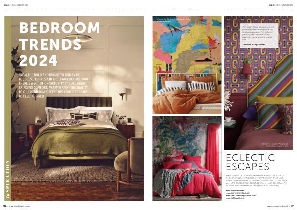 FROM THE BOLD AND BRIGHT TO ROMANTIC TOUCHES , FLORALS AND LIGHT AIRY ROOMS , WHILE THERE ’ S A LOT OF OPPORTUNITY , IT ’ S ALL ABOUT BRINGING COMFORT , WARMTH AND PERSONALITY TO OUR BEDROOM SPACES THIS YEAR . GET READY TO FEEL INSPIRED . inSPIRATION