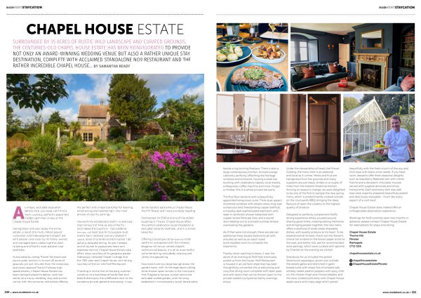 SURROUNDED BY 35 ACRES OF RUSTIC WILD LANDSCAPE AND CURATED GROUNDS , THE CENTURIES-OLD CHAPEL HOUSE ESTATE HAS BEEN REINVIGORATED TO PROVIDE NOT ONLY AN AWARD-WINNING WEDDING VENUE BUT ALSO A RATHER UNIQUE STAY DESTINATION , COMPLETE WITH ACCLAIMED STANDALONE NO9 RESTAURANT AND THE RATHER INCREDIBLE CHAPEL HOUSE … BY SAMANTHA READY