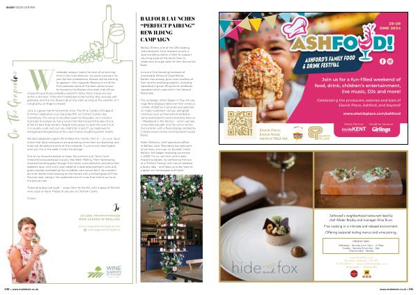 www . hideandfox . co . uk The Green , Saltwood , CT21 4PS 01303 260915 | restaurant @ hideandfox . co . uk @ hideandfox | # hideandfox www . insidekent . co . uk • 141