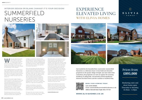 Nestled on the eastern edge of Staple , a small rural parish in East Kent just nine miles from Canterbury , Summerfield Nurseries is a distinguished collection of just 11 fourbedroom detached properties . Part of the unique charm of the development is the diverse assortment of property designs available with many unique in design , all showcasing Elivia Homes ’ meticulous attention to detail and quality specification .
