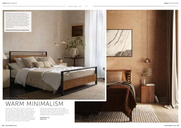“ Minimalism can often be mistaken for being clinical ; however , the trend of warm minimalism really combines sleek design with warm and cosy . A great way to do this in a bedroom can be to implement soft wooden textures into bed frames bedside drawers and wardrobes , which promotes a warmness to the space while also fitting coherently into a more simplified overall look and feel .”