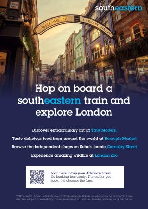 * T & C’ s apply. Advance tickets are available as single tickets on selected routes at specific times and are subject to availability. For more information, visit southeasternrailway. co. uk / advance