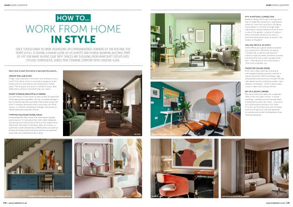 SET UP A ZOOM CORNER Not every home has space for a separate office. Enter the‘ Zoom corner’. A styled backdrop- perhaps a small console table, a framed print and a slim lamp- can carve out a professional setting in any room. It’ s a lifesaver for those who want to keep work out of sight but still look polished on camera and avoids the dreaded virtual meeting backdrop!