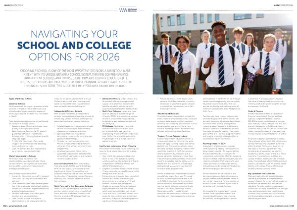 CHOOSING A SCHOOL IS ONE OF THE MOST IMPORTANT DECISIONS A PARENT CAN MAKE. IN KENT, WITH ITS UNIQUE GRAMMAR SCHOOL SYSTEM, THRIVING COMPREHENSIVES, INDEPENDENT SCHOOLS AND DIVERSE SIXTH FORM AND FURTHER EDUCATION( FE) ROUTES, THE OPTIONS ARE VAST. WHETHER YOU’ RE PLANNING A YEAR 7 START IN 2026 OR RETHINKING SIXTH FORM, THIS GUIDE WILL HELP YOU MAKE AN INFORMED CHOICE.