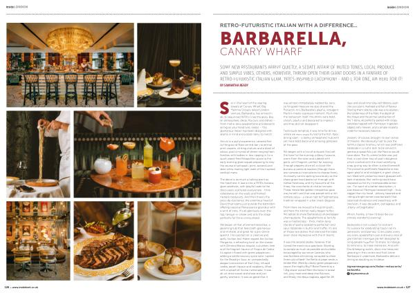 Set in the heart of the soaring towers of Canary Wharf, Big Mamma Group’ s latest London venture, Barbarella, has arrived in all its sequinned 1970’ s Cinecittà glory. Big on atmosphere, dècor, flavours and dishes – think metre-long spaghettone and desserts as big as your head( yes, really) – this glamorous Italian has been designed with drama in mind and a bold menu to match.