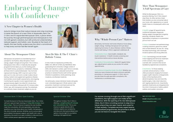 To mark the launch of the new Sevenoaks Clinic, The Ü Clinic will host a special Open Evening on Friday 10th October, from 6pm to 9pm. This is a chance to explore the new facilities, meet the consultants, GPs and specialists, and ask any questions you may have about your health, menopause, or the clinic’ s broader services. Whether you’ re curious about personalised menopause support, eye health, skin care, or aesthetics, the event is an open invitation to discover how Ü Clinic’ s whole-person approach can work for you.