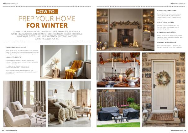 AS THE DAYS GROW SHORTER AND TEMPERATURES DROP, PREPARING YOUR HOME FOR WINTER ENSURES WARMTH, COMFORT AND EFFICIENCY. FROM COSY TEXTURES TO PRACTICAL MAINTENANCE, THESE TIPS WILL HELP YOU CREATE A WELCOMING SANCTUARY DURING THE COLDER MONTHS.