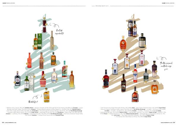 1. Glen Marnoch Islay Single Malt Scotch Whisky, 70cl, £ 18.99, ALDI 2. Bepi Tosolini Amaretto Saliza, 70cl, £ 29.49, Virgin Wines 3. Brunette Organic Cold Brew Coffee Liqueur, 70cl / 25 %, £ 31.25, The Whisky Exchange 4. Jo Vodka- The Pursuit, 70cl, £ 49.99, Jo Vodka 5. Jo Vodka- The Bohemian, 70cl, £ 49.99, Jo Vodka 6. Jo Vodka- The Artist, 70cl, £ 49.99, Jo Vodka 7. Goslings Spirited Seas, 70cl, £ 59.50, Master of Malt 8. Goslings Black Seal Rum, 70cl, £ 29.75, Master of Malt 9. PAVARI 17, 70cl, £ 19.99, Pavari 10. Falkland Islands Gin, 70cl, £ 139, Falkland Islands Spirits 11. Mermaid’ s New Limited-Edition Winter Gin, 70cl, £ 40, John Lewis 12. Four Roses Small Batch Bourbon, 70cl, £ 30.50, Master of Malt 13. The Dalmore Port Wood Reserve Whisky, 70cl, £ 69.49, Virgin Wines www. insidekent. co. uk • 113