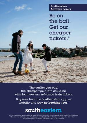 * Our Advance fares are available as single tickets on selected routes at specific times, subject to availability. These fares could be cheaper than if you were to buy tickets for the same journey on the day of travel. For more information, visit southeasternrailway. co. uk / advance