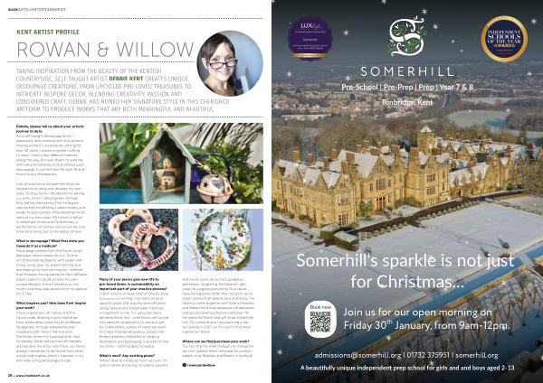 TAKING INSPIRATION FROM THE BEAUTY OF THE KENTISH COUNTRYSIDE, SELF-TAUGHT ARTIST DEBBIE KENT CREATES UNIQUE DECOUPAGE CREATIONS, FROM UPCYCLED PRE-LOVED TREASURES TO INTRICATE BESPOKE DECOR. BLENDING CREATIVITY, PASSION AND CONSIDERED CRAFT, DEBBIE HAS HONED HER SIGNATURE STYLE IN THIS CHERISHED ARTFORM TO PRODUCE WORKS THAT ARE BOTH MEANINGFUL AND BEAUTIFUL.