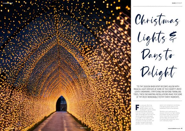 ‘ TIS THE SEASON WHEN KENT BECOMES AGLOW WITH MAGICAL LIGHT DISPLAYS AT SOME OF THE COUNTY’ S MOST- LOVED LANDMARKS. STRETCHING FAR BEYOND TWINKLING TREES, THESE ENCHANTING INSTALLATIONS MAKE FOR SOME OF THE MOST MEMORABLE FESTIVE FAMILY MOMENTS.