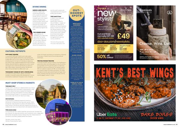 MARLOWE THEATRE A renowned 1,200 seat theatre and studio space attracting both global productions and spectacular independents to its iconic stage, the Marlowe Theatre stands proud at the heart of Canterbury’ s booming arts scene. Enjoy a packed programme of top musicals, dramas, beloved celebrity appearances and an awardwinning annual Christmas pantomime, as well as a light-filled modern restaurant perfect for both preshow dining and daytime coffee catch-ups.