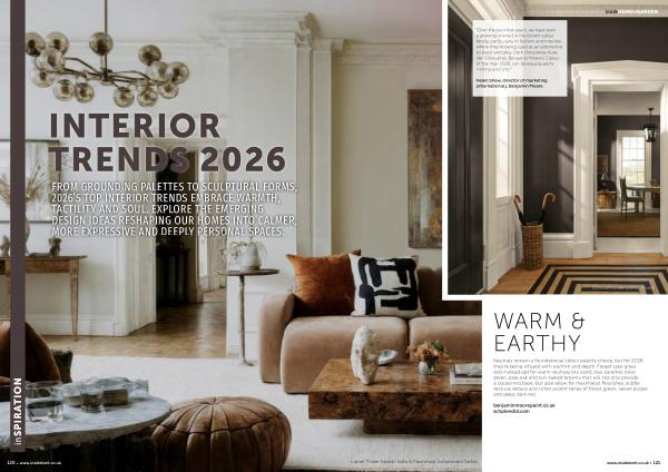 FROM GROUNDING PALETTES TO SCULPTURAL FORMS, 2026’ S TOP INTERIOR TRENDS EMBRACE WARMTH, TACTILITY AND SOUL. EXPLORE THE EMERGING DESIGN IDEAS RESHAPING OUR HOMES INTO CALMER, MORE EXPRESSIVE AND DEEPLY PERSONAL SPACES.