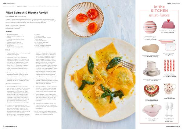 5. Place a large frying pan on a medium heat and add the spinach. Stir until wilted then tip into a sieve to drain. Place the cooked spinach into a clean tea towel and wrap up. Squeeze out as much liquid as possible then chop the spinach and place in a mixing bowl. Add the ricotta, Parmesan cheese, finely grated lemon zest and a good few gratings of nutmeg. Try the mixture and season to taste. Cover the mixture and chill in the fridge.
