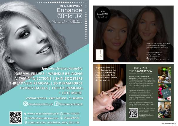 thegranaryspa. co. uk info @ thegranaryspa. co. uk 01233 647647 www. insidekent. co. uk • 109