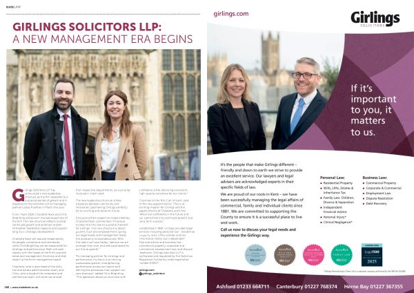 GIRLINGS SOLICITORS LLP: A NEW MANAGEMENT ERA BEGINS