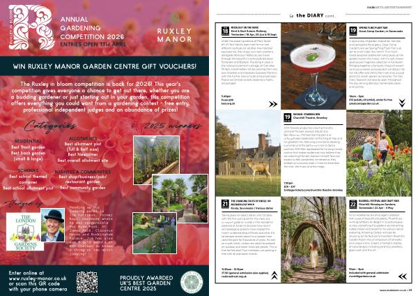 The Ruxley in bloom competition is back for 2026! This year ' s competition gives everyone a chance to get out there, whether you are a budding gardener or just starting out in your garden, this competition offers everything you could want from a gardening contest- free entry, professional independent judges and an abundance of prizes!