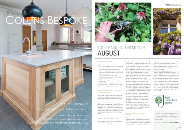1. Prune wisteria 2. Don’ t delay summer pruning fruits trained as restricted forms 3. Deadhead flowering plants regularly 4. Watering! Particularly containers and new plants, preferably with grey recycled water or stored rainwater 5. Collect seed from garden plants 6. Harvest sweetcorn and other vegetables as they become ready 7. Continue cutting out old fruited canes on raspberries 8. Lift and pot up rooted strawberry runners 9. Keep ponds and water features topped up 10. Feed the soil with green manures