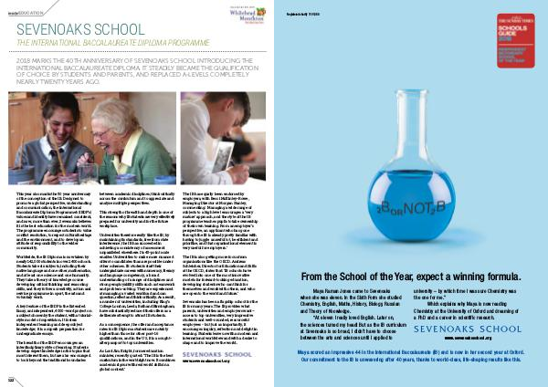 2018 MARKS THE 40TH ANNIVERSARY OF SEVENOAKS SCHOOL INTRODUCING THE INTERNATIONAL BACCALAUREATE DIPLOMA. IT STEADILY BECAME THE QUALIFICATION OF CHOICE BY STUDENTS AND PARENTS, AND REPLACED A-LEVELS COMPLETELY NEARLY TWENTY YEARS AGO.