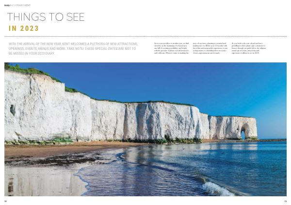 WITH THE ARRIVAL OF THE NEW YEAR , KENT WELCOMES A PLETHORA OF NEW ATTRACTIONS , OPENINGS , EVENTS , MENUS AND MORE . TAKE NOTE ! THESE SPECIAL DATES ARE NOT TO BE MISSED IN YOUR 2023 DIARY .