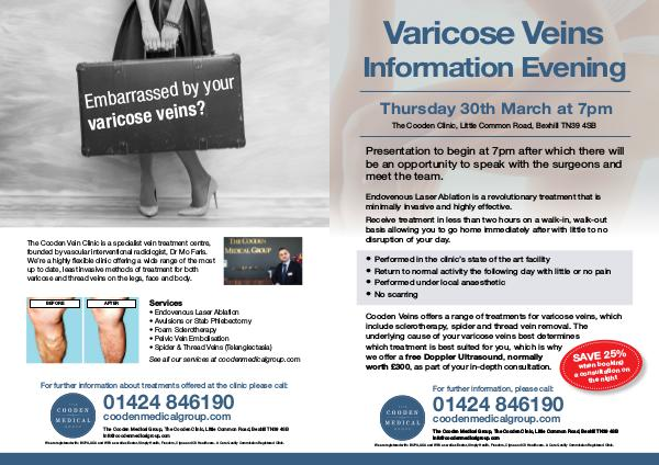 Thursday 30th March at 7pm The Cooden Clinic, Little Common Road, Bexhill TN39 4SB