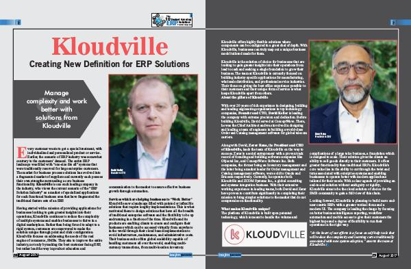 Looking forward, Kloudville is planning to build more enduser centric ERPs with a greater vertical focus and a modern UI. The company is leading the charge by focusing on better business intelligence reporting, workflow automation and mobile access to give their customers the highest hope and a degree of flexibility to run their operations in the right way.