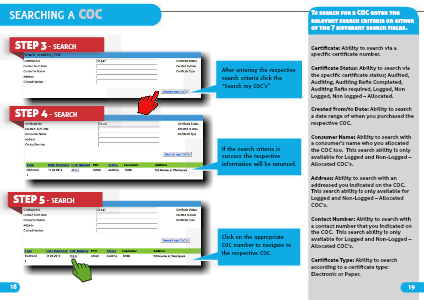 To search for a COC enter the relevant search criteria on either of the 7 different search fields.