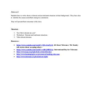 Students have to write down a tolerant and an intolerant situation in their background . They have also
