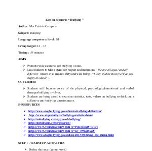 Ask Students to define bullying writing definitions or words on the board addressing to the