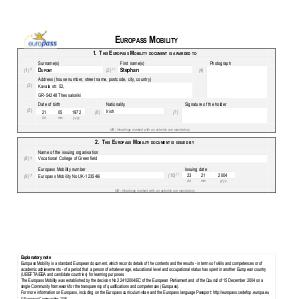 1. THIS EUROPASS MOBILITY DOCUMENT IS AWARDED TO