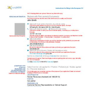 Instructions for filling in the Europass CV - europass.cedefop.europa.eu - © European Union, 2002-2015