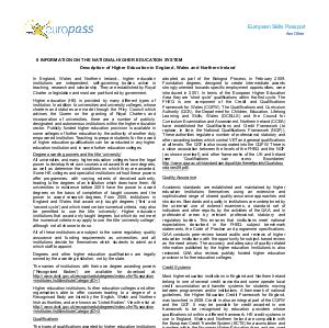 8 INFORMATION ON THE NATIONAL HIGHER EDUCATION SYSTEM Description of Higher Education in England, Wales and Northern Ireland