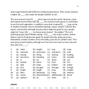 to eat fruit and vegetables. In addition, pizza that is baked (9) ____ may not be