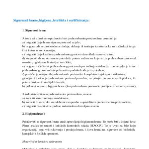 Sigurnost hrane, higijena, kvaliteta i certificiranje: