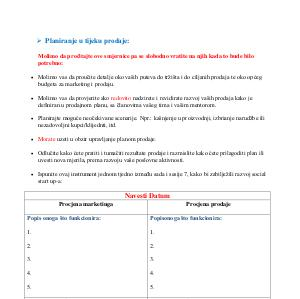 Molimo vas da proučite detalje oko vaših puteva do trţišta i do ciljanih prodaja te oko općeg