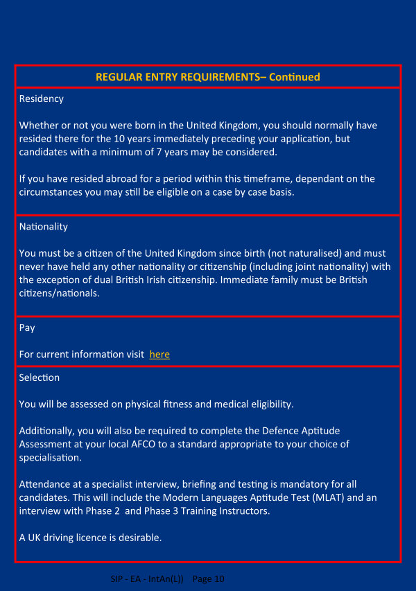 Attendance at a specialist interview, briefing and testing is mandatory for all candidates. This will include the Modern Languages Aptitude Test( MLAT) and an interview with Phase 2 and Phase 3 Training Instructors.