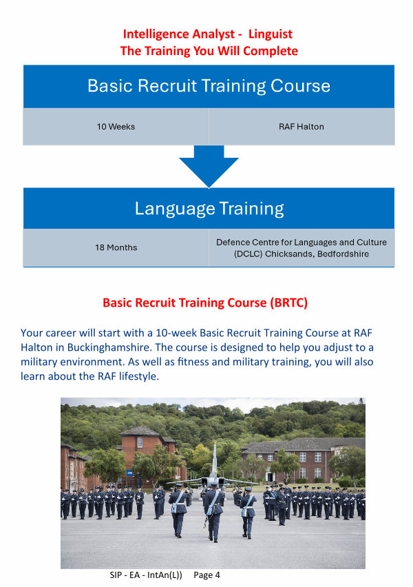 Your career will start with a 10-week Basic Recruit Training Course at RAF Halton in Buckinghamshire. The course is designed to help you adjust to a military environment. As well as fitness and military training, you will also learn about the RAF lifestyle.