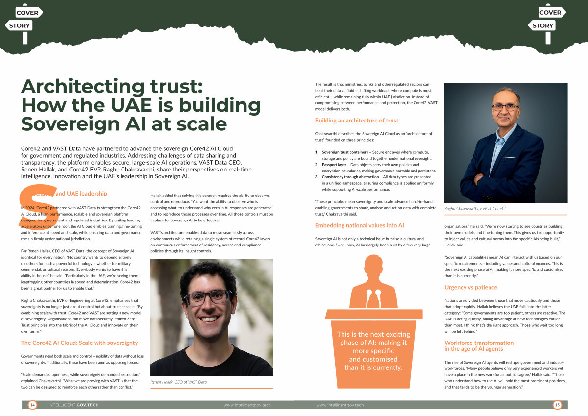 The rise of Sovereign AI agents will reshape government and industry workforces.“ Many people believe only very experienced workers will have a place in the new workforce, but I disagree,” Hallak said.“ Those who understand how to use AI will hold the most prominent positions, and that tends to be the younger generation.” www. intelligentgov. tech. com 15
