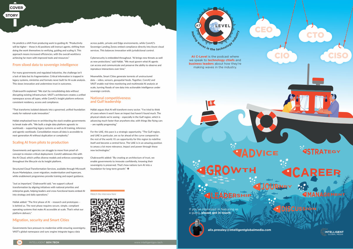 Governments and agencies can struggle to move from proof-ofconcept to mission-critical deployment. Core42 addresses this with the AI Cloud, which unifies diverse models and enforces sovereignty throughout the lifecycle via its Insight platform.