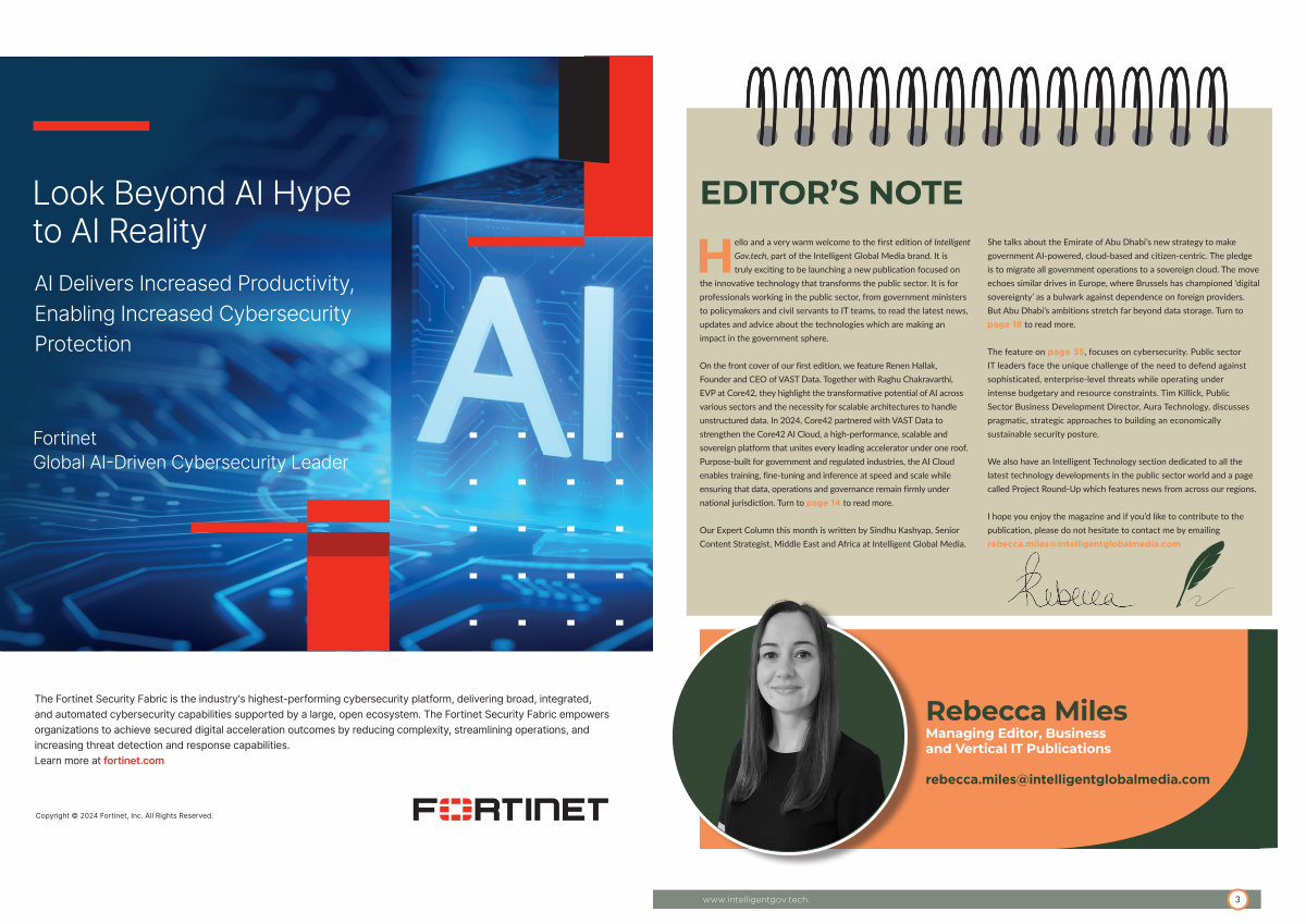 Hello and a very warm welcome to the first edition of Intelligent Gov. tech, part of the Intelligent Global Media brand. It is truly exciting to be launching a new publication focused on the innovative technology that transforms the public sector. It is for professionals working in the public sector, from government ministers to policymakers and civil servants to IT teams, to read the latest news, updates and advice about the technologies which are making an impact in the government sphere.