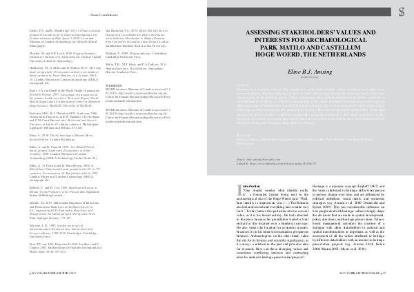 ASSESSING STAKEHOLDERS’ VALUES AND INTERESTS FOR ARCHAEOLOGICAL PARK MATILO AND CASTELLUM HOGE WOERD, THE NETHERLANDS