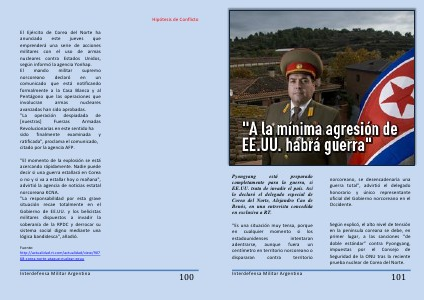 " El momento de la explosión se está acercando rápidamente. Nadie puede decir si una guerra estallará en Corea o no y si va a estallar hoy o mañana ", advirtió la agencia de noticias estatal norcoreana KCNA. " La responsabilidad por esta grave situación recae totalmente en el Gobierno de EE. UU. y los belicistas militares dispuestos a invadir la soberanía de la RPDC y derrocar su sistema social digno mediante una lógica bandidesca ", añadió.