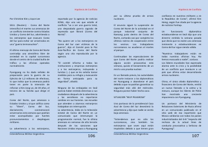 La advertencia a los extranjeros, Interdefensa Militar Argentina reportada por la agencia de noticias KCNA, dijo una vez que estalle el conflicto " va a ser una guerra total, una despiadada guerra sagrada de represalia que librará( Corea del Norte)".