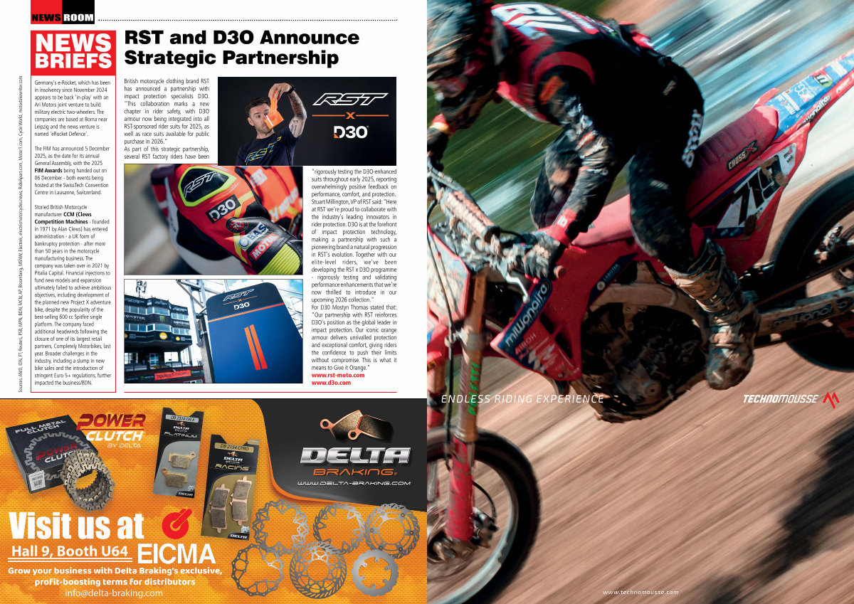 " rigorously testing the D3O-enhanced suits throughout early 2025, reporting overwhelmingly positive feedback on performance, comfort, and protection. Stuart Millington, VP of RST said: " Here at RST we ' re proud to collaborate with the industry ' s leading innovators in rider protection. D3O is at the forefront of impact protection technology, making a partnership with such a pioneering brand a natural progression in RST ' s evolution. Together with our elite-level riders, we ' ve been developing the RST x D3O programme- rigorously testing and validating performance enhancements that we ' re now thrilled to introduce in our upcoming 2026 collection." For D30 Mostyn Thomas stated that: " Our partnership with RST reinforces D3O ' s position as the global leader in impact protection. Our iconic orange armour delivers unrivalled protection and exceptional comfort, giving riders the confidence to push their limits without compromise. This is what it means to Give it Orange." www. rst-moto. com www. d3o. com