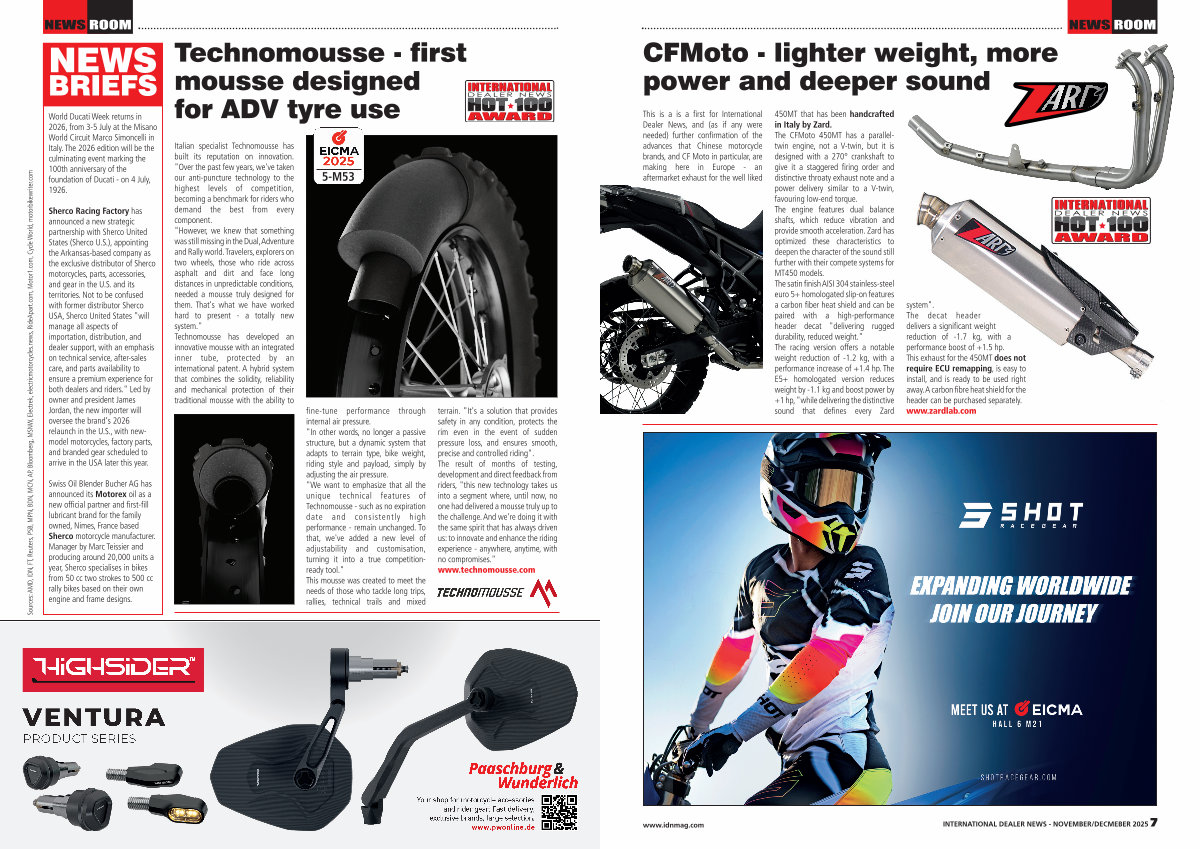 system ". The decat header delivers a significant weight reduction of-1.7 kg, with a performance boost of + 1.5 hp. This exhaust for the 450MT does not require ECU remapping, is easy to install, and is ready to be used right away. A carbon fibre heat shield for the header can be purchased separately. www. zardlab. com www. idnmag. com INTERNATIONAL DEALER NEWS- NOVEMBER / DECMEBER 2025 7